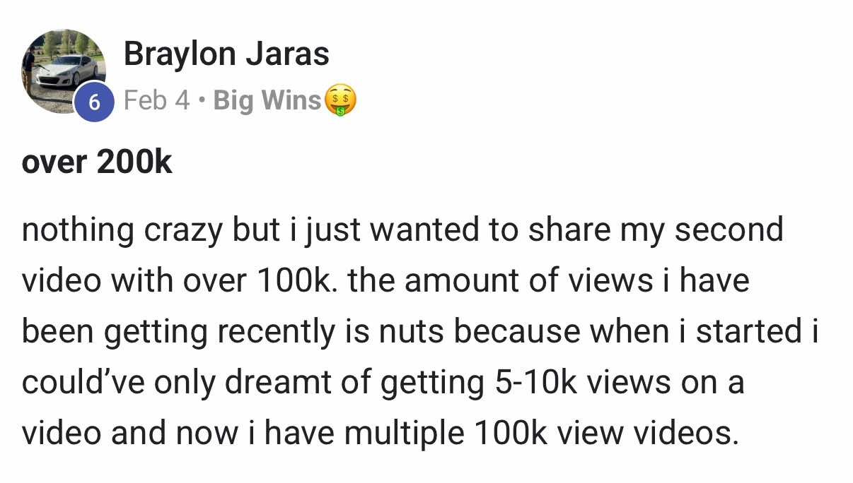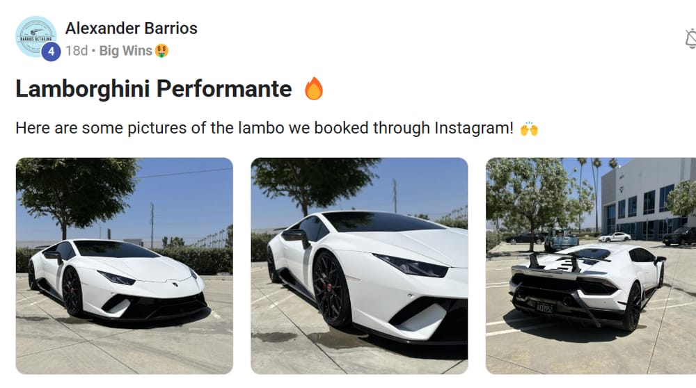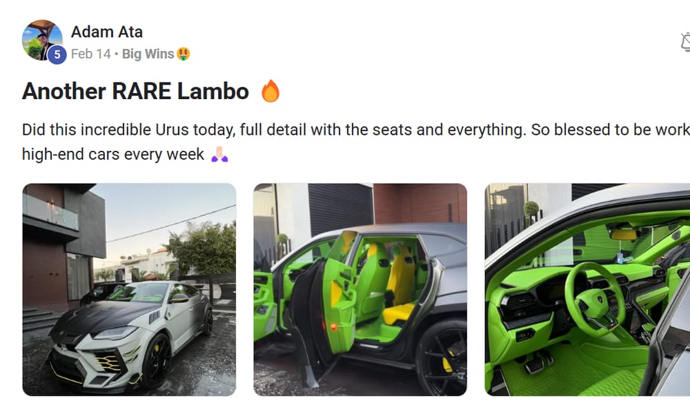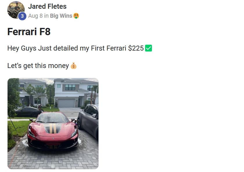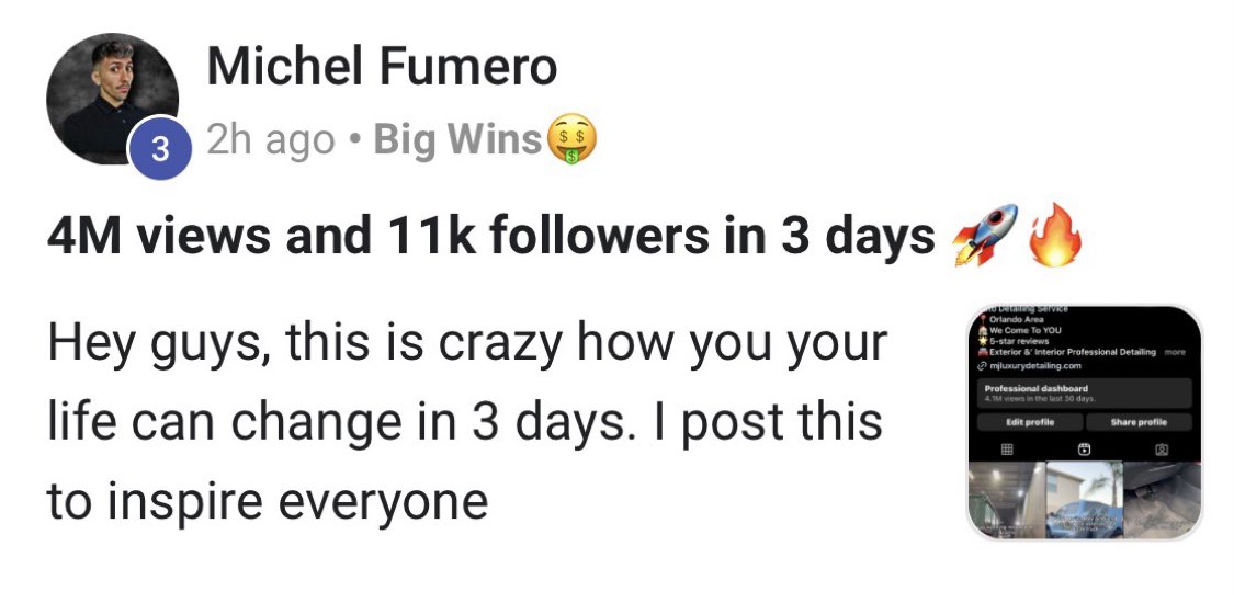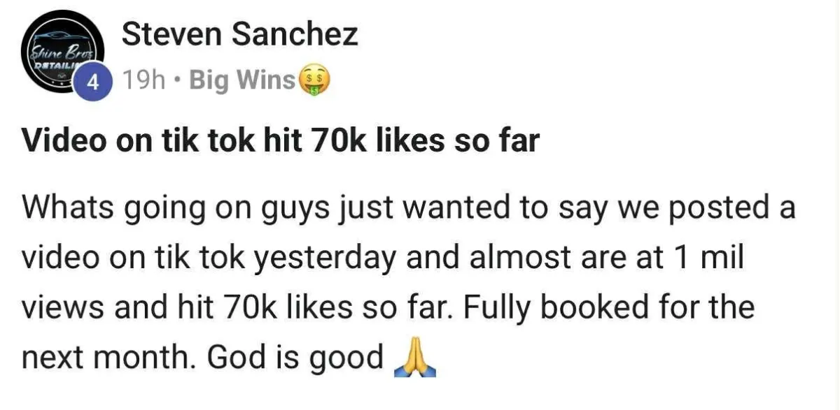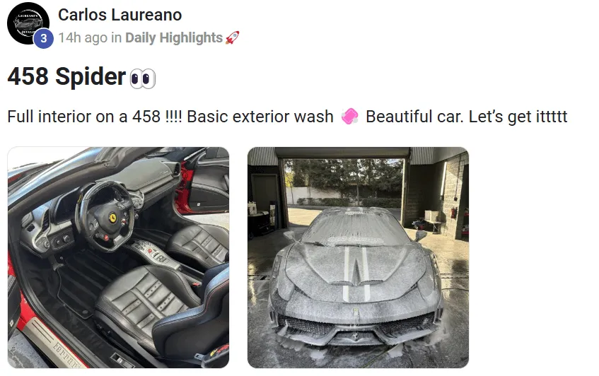 "After 2 months focusing on content creation my business just took off. A lot of people started reaching out and they even paid me extra to go and detail their car, it's been crazy."