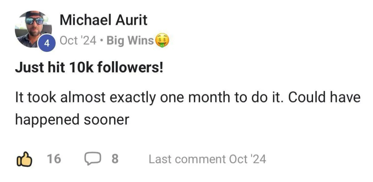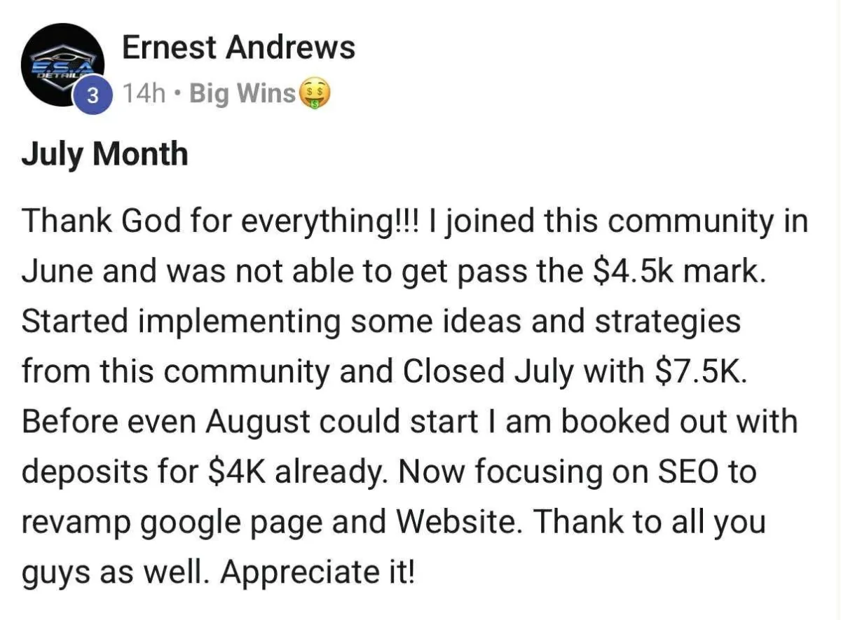 "We were unable to scale our business like we always wanted to. After following the strategies from this community we closed the Month with $17k."